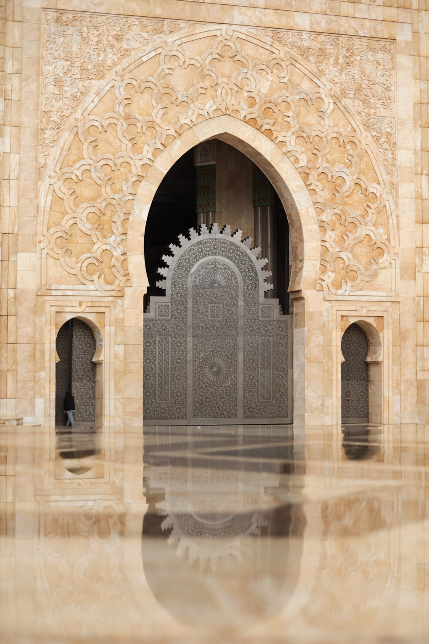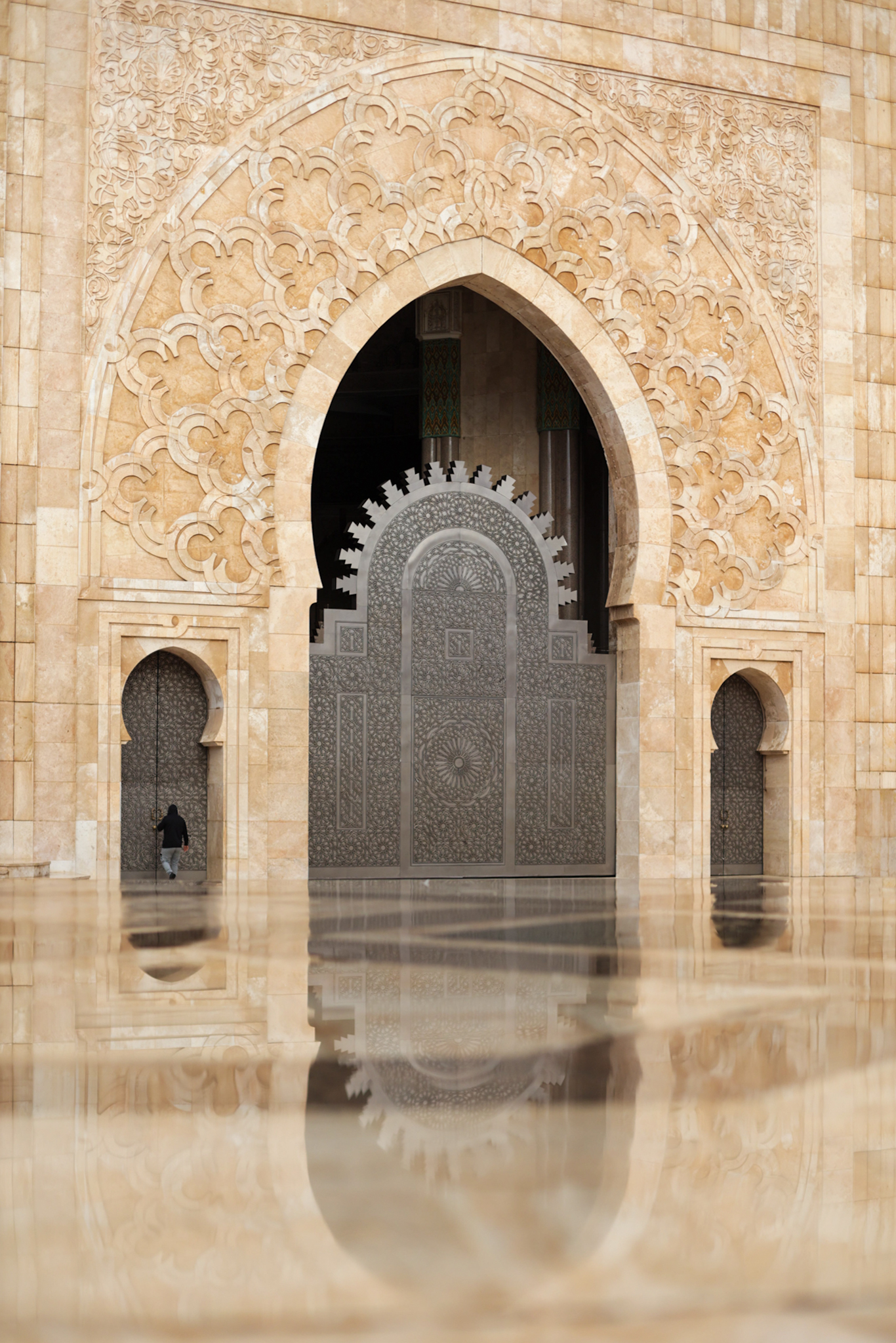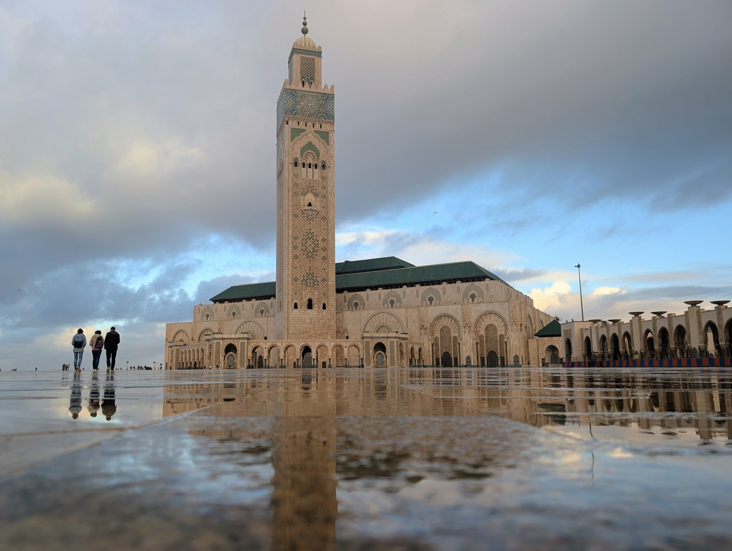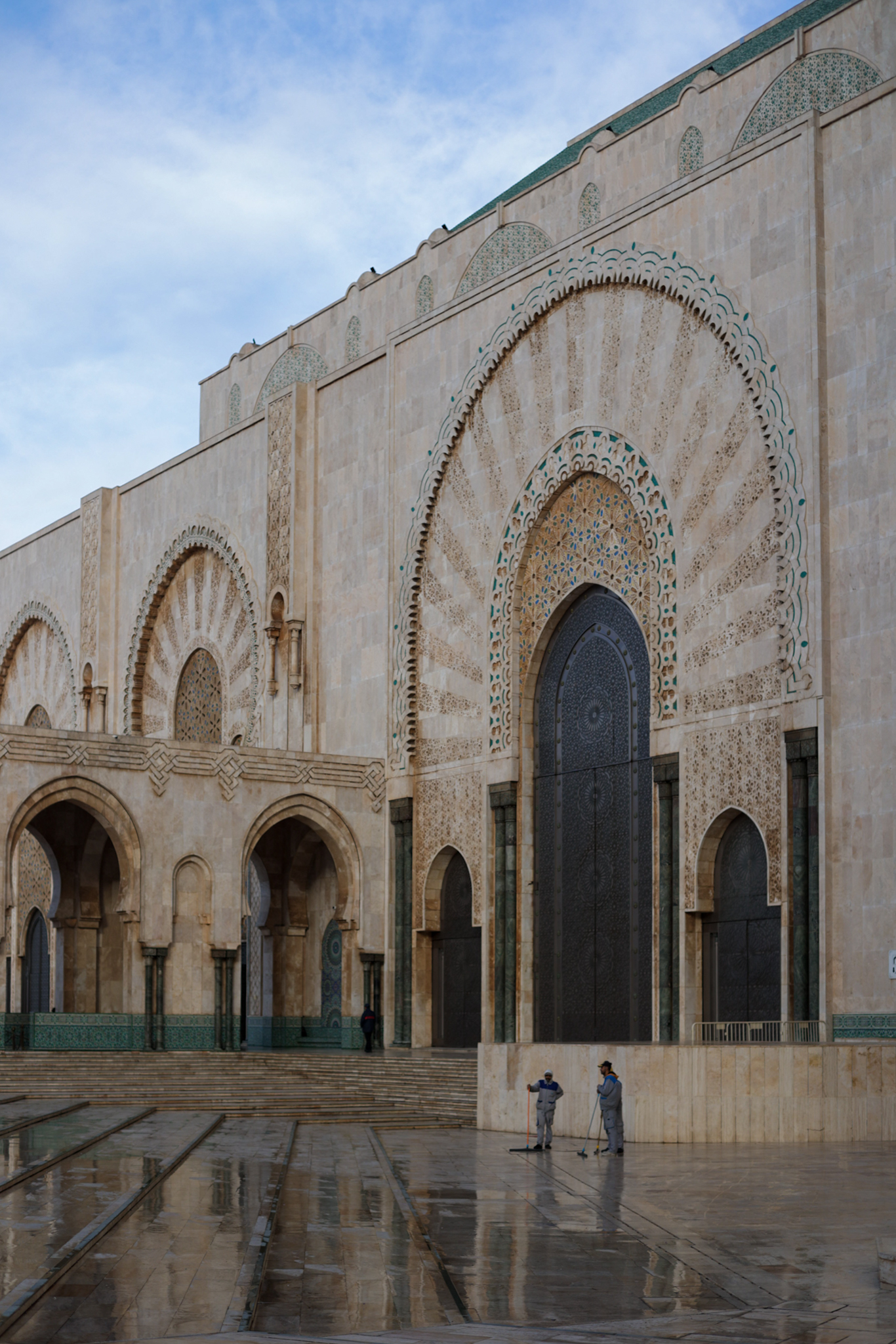 Die Hassan-II.-Moschee wirkt zwar traditionell wurde aber erst in den 1990er Jahren gebaut. Sie ist die größte Moschee Casablancas und die drittgrößte der Welt. Gebaut nach marokkanischer Tradition, das Minarett steht allein auf einer rechteckigen Grundfläche, anders als in der Türkei, wo sich meist mehrere runde Minarette über einer Moschee erheben.